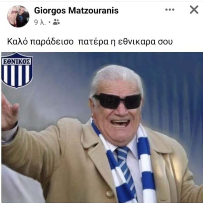 Η απώλεια του Γιάννη Ματζουράνη, του γνωστού «Εθνικάρα» είναι τεράστια για όλο το ελληνικό ποδόσφαιρο. Η φωνή του, ήταν η φωνή της αγνής αγάπης για την ομάδα. Ας είναι ελαφρύ το χώμα που θα τον σκεπάσει! #RIP pic.twitter.com/Oi8y7rIpbO