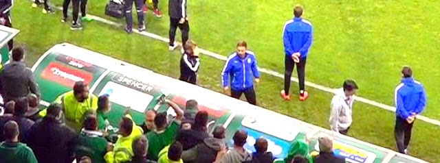 Τις φωτογραφίες αποκάλυψε το bloko.gr και σ’ αυτές φαίνεται ο οπαδός του Παναθηναϊκού να έχει φτάσει στα κάγκελα, από τη θέση του ψηλά στην εξέδρα, και να πετάει το κουτάκι της μπίρας, το οποίο έκανε γκελ στο σκέπαστρο του πάγκου και χτύπησε τον Βλάνταν Ίβιτς στο κεφάλι.