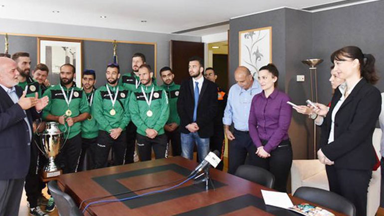 Η Έλενα Κουντουρά συνεχάρη τους ποδοσφαιριστές της ομάδας για την κατάκτηση του πανευρωπαϊκού πρωταθλήματος και εκείνοι με τη σειρά τους ευχαρίστησαν την αν. υπουργό για την έως τώρα ουσιαστική στήριξή της, ενώ της δώρισαν τη φανέλα της ομάδος.