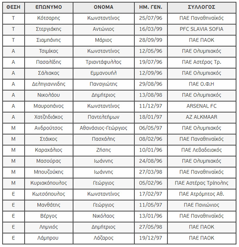 Τις κλήσεις του για το ματς της Εθνικής Ελπίδων με την Τσεχία που θα διεξαχθεί στις 10 Σεπτεμβρίου στο πλαίσιο της προκριματικής φάσης του Ευρωπαϊκού Πρωταθλήματος ανακοίνωσε ο Αντώνης Νικοπολίδης.