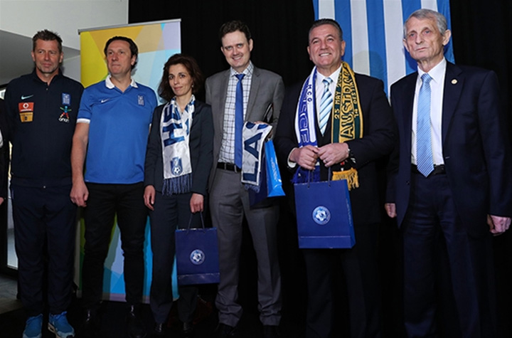 Οι διεθνείς ποδοσφαιριστές και ο Μίκαελ Σκίμπε, συνοδευόμενοι από τον πρόεδρο της ΕΠΟ Γιώργο Γκιρτζίκη, βραβεύτηκαν από τον πρόεδρο της Ελληνικής Κοινότητας Βασίλη Παπαστεργιάδη, παρουσία του υπουργού Πολιτιστικών Θεμάτων της πολιτείας της Βικτόρια, Ρόμπιν Σκοτ, του υπουργού των Σπορ της ίδια πολιτείας Τζον Έρεν, αλλά και της γενικής προξένου της Ελλάδας στη Βικτόρια Χριστίνας Σημανταράκη.