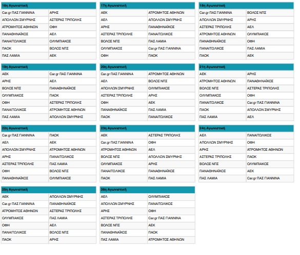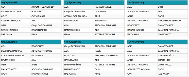 Από εκεί και πέρα, οι υπόλοιπες συναντήσεις έχουν ως εξής: Άρης-Λαμία, Ατρόμητος-Βόλος, ΟΦΗ-Παναιτωλικός, ΠΑΟΚ-ΑΕΛ.