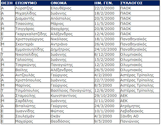 Ο ομοσπονδιακός τεχνικός κάλεσε τους ακόλουθους ποδοσφαιριστές για προπονήσεις της Εθνικής Ομάδας Νέων U-18 στις εγκαταστάσεις του Αγ. Κοσμά 14-16/05/2018.