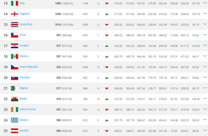Από εκεί και πέρα οι αντίπαλοι μας στον όμιλο των προκριματικών του Euro 2016 έχουν πλασαριστεί ως εξής: Ρουμανία 12η (+2), Ουγγαρία 43η (+3), Βόρεια Ιρλανδία 42η (+1), Φινλανδία 78η και Νήσοι Φερόε 102η (+3).