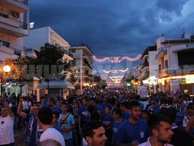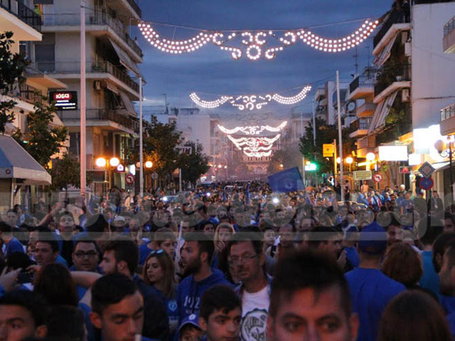 Με πυροτεχνήματα, βεγγαλικά και μηχανοκίνητη πορεία, στην κεφαλή της οποίας βρέθηκε η κυανόλευκη πρωταθλήτρια αποστολή, από το Πανθεσσαλικό στάδιο έως το κέντρο της πόλης και τα γραφεία της ΠΑΕ και από εκεί προς τα γραφεία των συνδέσμων μπροστά από το θρυλικό Παντελής Μαγουλάς, γιόρτασαν οι χιλιάδες φίλοι της Νίκης Βόλου, την επιστροφή της Κυρίας στα σαλόνια της Α’ Εθνικής κατηγορίας, έπειτα από 48 ολόκληρα χρόνια αναμονής.