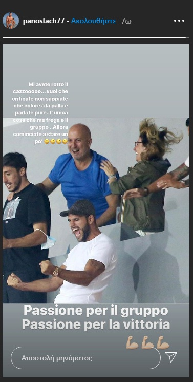 Πιο συγκεκριμένα, ο Έλληνας διεθνής άσος ανέβασε στο instagram μία φωτογραφία, στην οποία απεικονίζεται ο ίδιος στην εξέδρα όπου παρακολουθούσε (λόγω καρτών) το παιχνίδι με τους Ρωμαίους, συνοδεύοντάς την από το εξής σχόλιο: