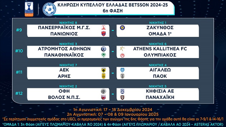 Αναλυτικά η κλήρωση για την «φάση των 16», έχει ως εξής: