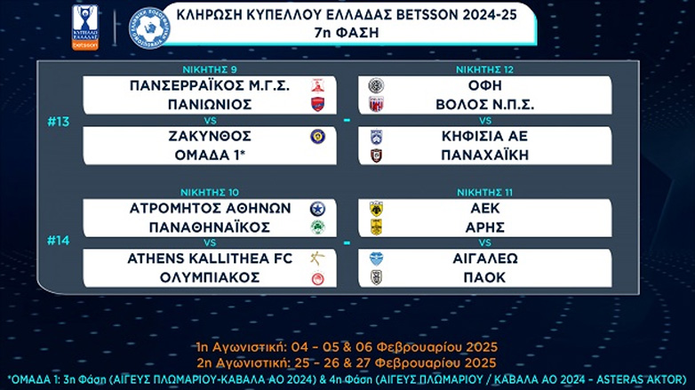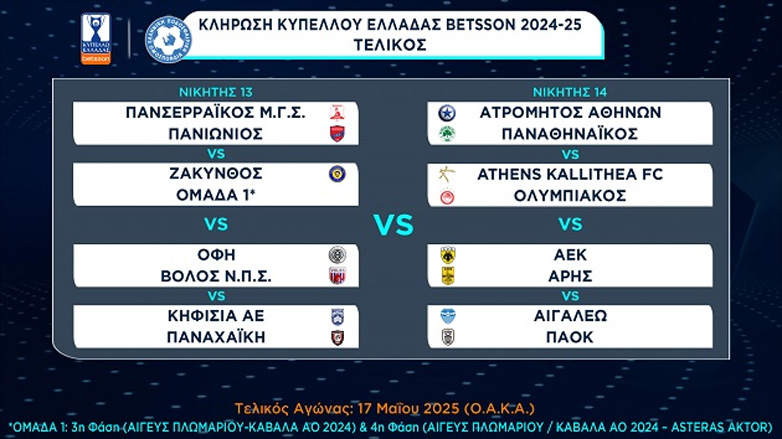 Πανσερραϊκός ή Πανιώνιος vs Ζάκυνθος – Αιγέας Πλωμαρίου/Καβάλα ή Αστέρας Τρίπολης AKTOR / ΟΦΗ – Βόλος vs Κηφισιά – Παναχαϊκή