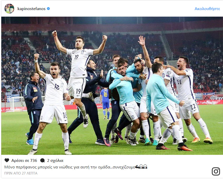 Ο Στέφανος Καπίνο μετά τον αποκλεισμό της Εθνικής από την Κροατία εξέφρασε την υπερηφάνειά του για την Ελλάδα. Μέσω του προσωπικού του λογαριασμού στο Instagram ο τερματοφύλακας του Ολυμπιακού έγραψε: