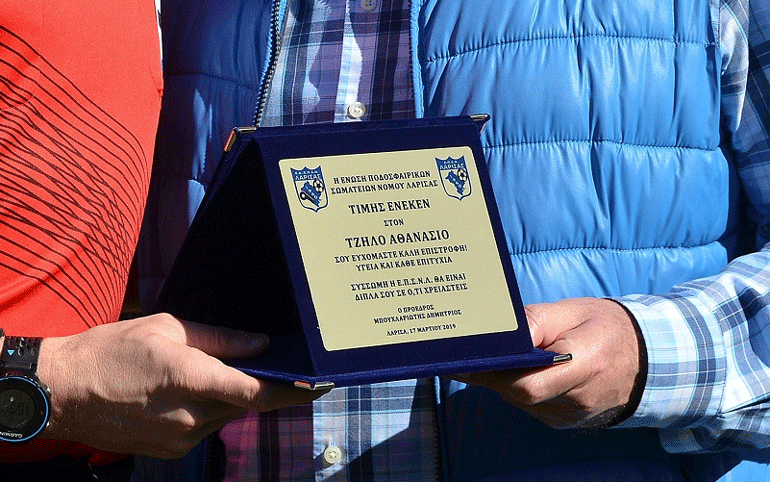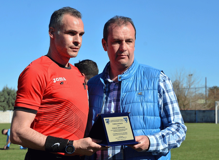 Μάλιστα, πριν την έναρξη του αγώνα βραβεύτηκε από την τοπική ΕΠΣ, που του ευχήθηκε υγεία και κάθε επιτυχία.