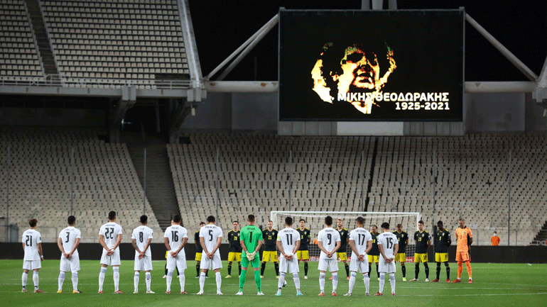 Λίγο αργότερα εκτυλίχθηκε ακόμα μία συγκινητική στιγμή στο Ολυμπιακό Στάδιο, καθώς τηρήθηκε ενός λεπτού σιγή στη μνήμη του Μίκη Θεοδωράκη.