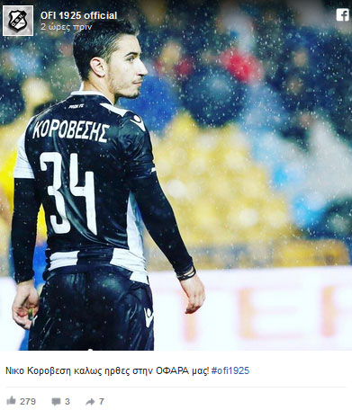 «Νικο Κοροβεση καλως ηρθες στην ΟΦΑΡΑ μας! #ofi1925», αναφέρει η σχετική ανάρτηση των Κρητών στο facebook.