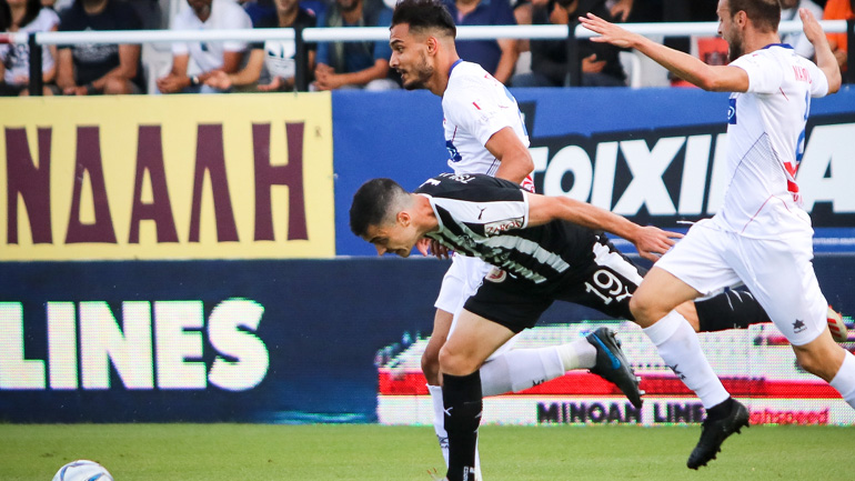 Στην πρώτη τους ουσιαστικά επίθεση οι φιλοξενούμενοι άνοιξαν το σκορ στο 9ο λεπτό. Ο Μαξίμοβιτς τροφοδότησε τον Αραμπούλι στην κόντρα, και ο τελευταίος νίκησε στο τετ α τετ τον Σωτηρίου, ανοίγοντας το σκορ για τους φιλοξενούμενους με κοντινό πλασέ.