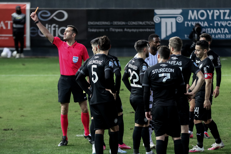 Στο 26΄ ο Βάτερμαν ανέτρεψε τον Τζόλη και ο διαιτητής Παπαπέτρου μετέτρεψε την αρχικώς επιδειχθείσα κίτρινη σε κόκκινη κάρτα μετά την εξέταση της φάσης στο VAR, εκτιμώντας ότι ο επιθετικός του ΠΑΟΚ θα έβγαινε σε προφανή θέση για γκολ.