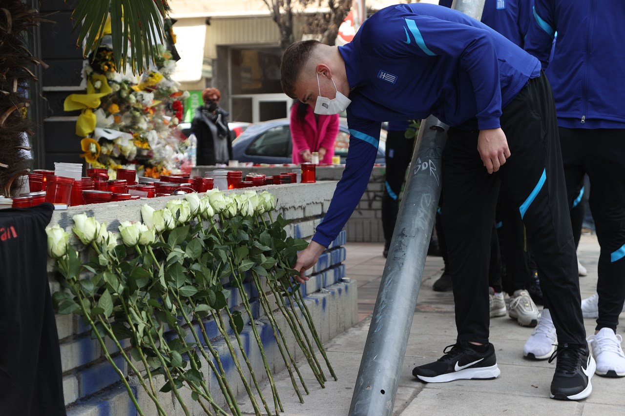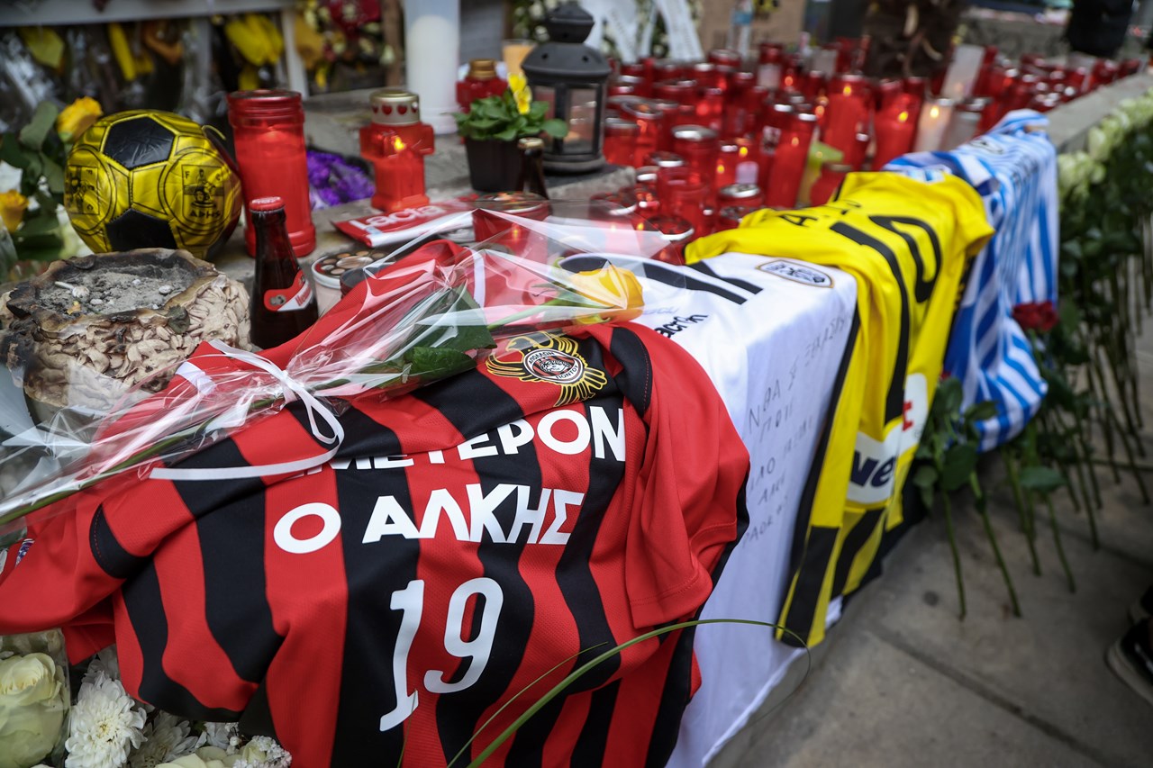 Νωρίτερα το σημείο επισκέφθηκαν οι ποδοσφαιριστές και το τεχνικό επιτελείο της εθνικής ομάδας ποδοσφαίρου Παίδων και άφησαν από ένα λευκό τριαντάφυλλο στη μνήμη του αδικοχαμένου Άλκη.