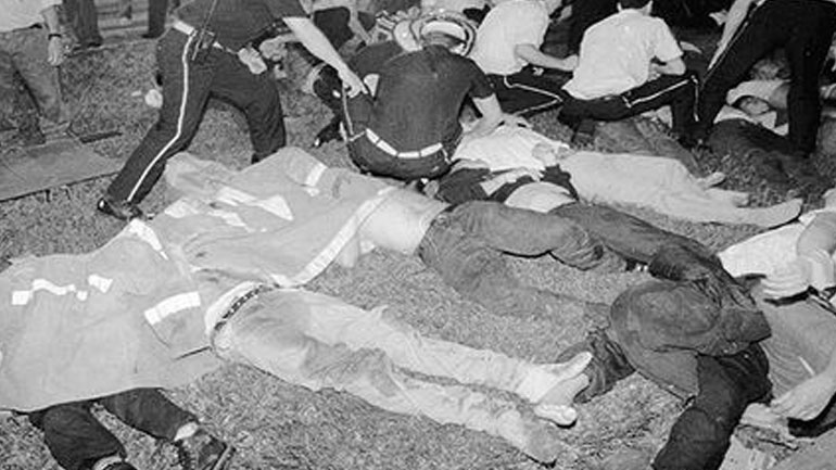 Κατεβαίνοντας οι φίλαθλοι, ο ένας πέφτει πάνω στον άλλον, αφού δεν μπορούσαν να δουν τι συμβαίνει μπροστά τους. Επικρατεί συνωστισμός και ασφυξία.