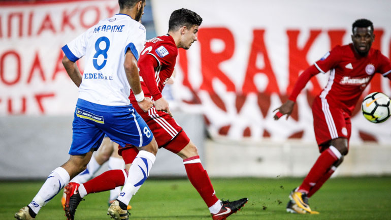 Οι ερυθρόλευκοι, που προκρίθηκαν στους 16 της διοργάνωσης, πήραν προβάδισμα στο 30′ με τον Τζούρτζεβιτς, ενώ οι Κρητικοί, οι οποίοι αποκλείστηκαν με ψηλά το κεφάλι, έφτασαν στην ισοφάριση με τέρμα του Αποστολίδη στο 68′.
