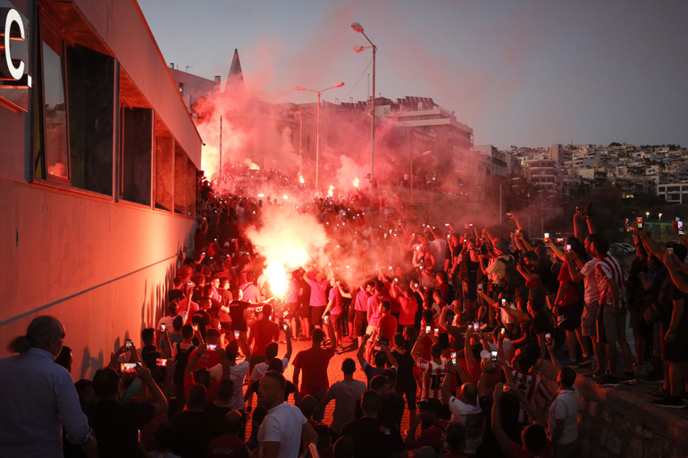 Εκεί αποθεώθηκε από τον κόσμο, ενώ βγήκε από τα γραφεία φορώντας την ερυθρόλευκη φανέλα!