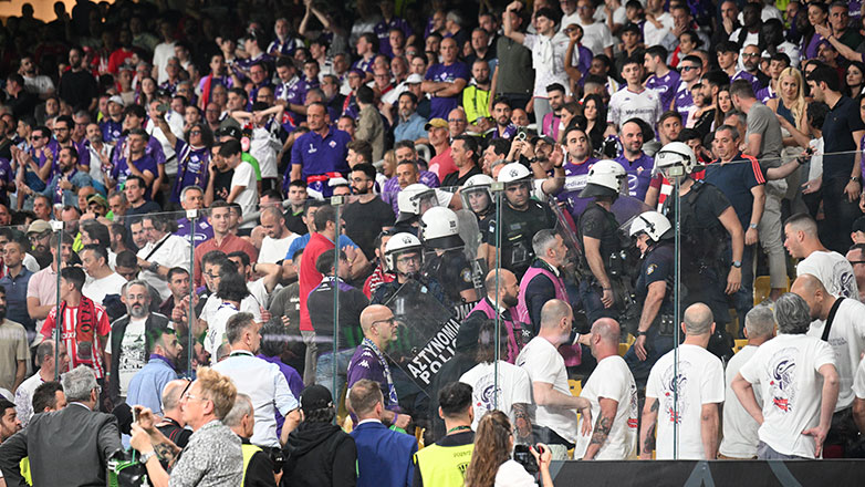 Ένταση δημιουργήθηκε στο φινάλε του πρώτου ημιχρόνου του τελικού του Conference League ανάμεσα στον Ολυμπιακό και τη Φιορεντίνα με τους φιλάθλους των «Βιόλα».