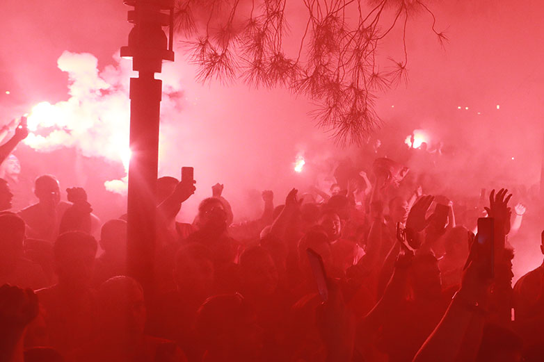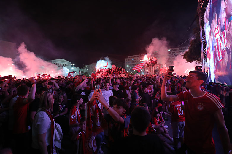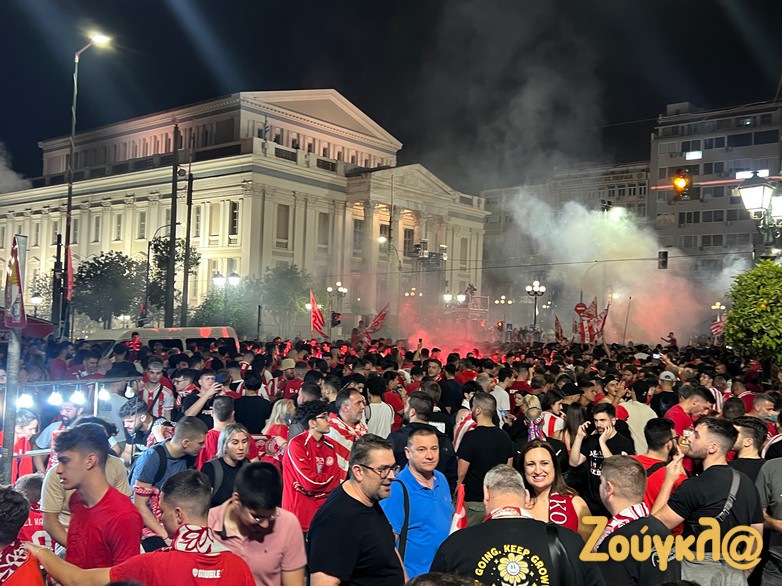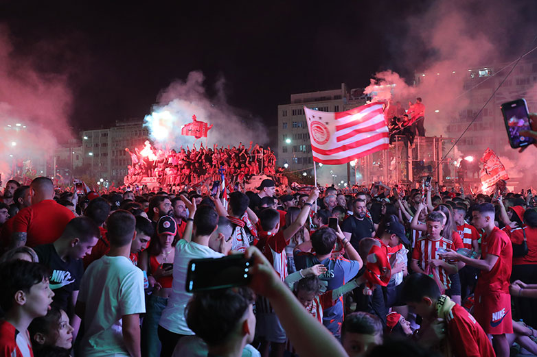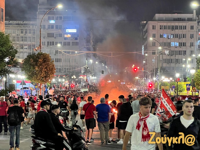 Ο Πειραιάς ήταν στο πόδι! Οι φίλαθλοι των ερυθρολεύκων είχαν στήσει κανονική μεταμεσονύκτια γιορτή.
