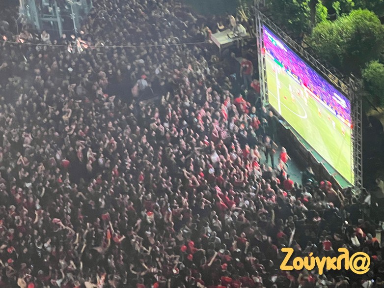 Χιλιάδες άνθρωποι από νωρίς το απόγευμα είχαν κατακλύσει την πλατεία Κοραή, όπου είχε στηθεί γιγαντοοθόνη και παρακολούθησαν την εξέλιξη της αναμέτρησης που ολοκληρώθηκε με το ιστορικό επίτευγμα της ελληνικής ομάδας.