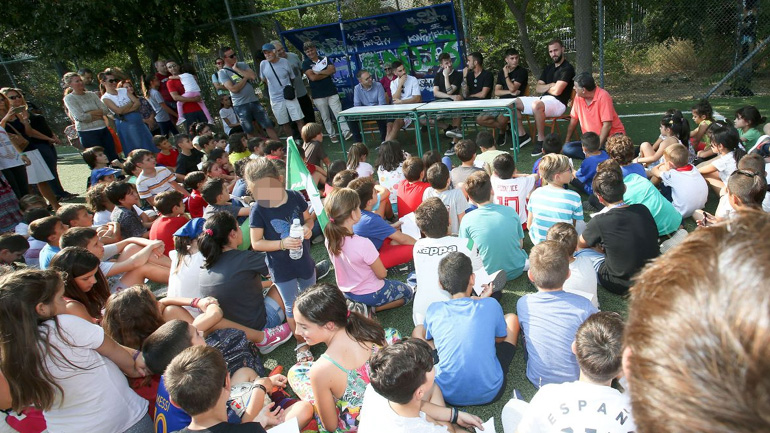 Στο πλαίσιο αυτό παίκτες και των δύο ομάδων, πιο συγκεκριμένα οι Δημήτρης Κουρμπέλης , Γιώργος Μασούρας , Θεοφάνης Μαυρομάτης και Γιάννης Μπουζούκης , επισκέφθηκαν σήμερα το 7ο Δημοτικό Σχολείο Αγίας Παρασκευής και μίλησαν στους μικρούς μαθητές, για την αξία να συνυπάρχουμε ειρηνικά εντός και εκτός των αγωνιστικών χώρων. Ανεξαρτήτως της ομάδας που υποστηρίζουμε.