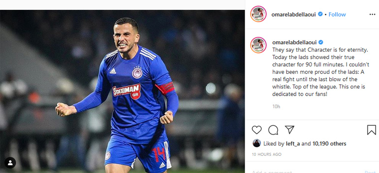 Την υπερηφάνεια του για την εκτός έδρας νίκη του Ολυμπιακού στο ντέρμπι κορυφής με τον ΠΑΟΚ εξέφρασε ο Ομάρ Ελαμπντελαουί με ανάρτησή του στο instagram, αφιερώνοντας το «τρίποντο» στον κόσμο της ομάδας.