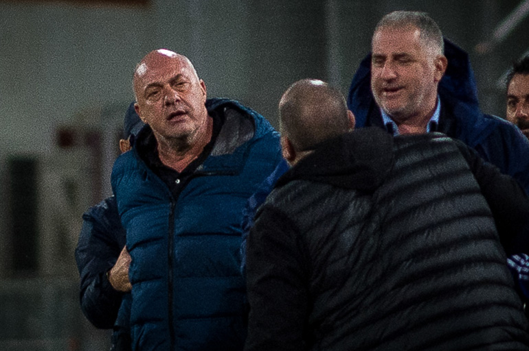Οι δυο τους αντάλλαξαν λόγια, ενώ ανάμεσά τους μπήκαν άνθρωποι από τους δύο πάγκους προκειμένου να τους χωρίσουν. Αποτέλεσμα της έντασης ήταν να αποβληθούν από τον διαιτητή Φωτιά.