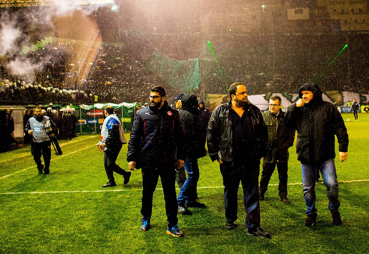 Είναι γνωστό ως «το ντέρμπι των αιώνιων εχθρών». Οι οπαδοί των φιλοξενούμενων έχουν αποκλειστεί στην Ελλάδα από το 2004, αλλά υπήρξε τόση βία και αναστάτωση εκείνο το βράδυ που η άμεση αντίδραση της κυβέρνησης ήταν η αναστολή της Super League. Και η ανακοίνωση, πριν τον αγώνα, ότι ο Μαρινάκης σκόπευε να πάει για πρώτη φορά στο γήπεδο «Απόστολος Νικολαΐδης» θεωρήθηκε συγκλονιστική.