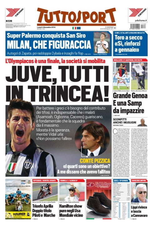 Η ιταλική εφημερίδα «Tuttosport» παρομοιάζει το παιχνίδι της Γιουβέντους με τον Ολυμπιακό για την 4η αγωνιστική των ομίλων του Champions League με πόλεμο!