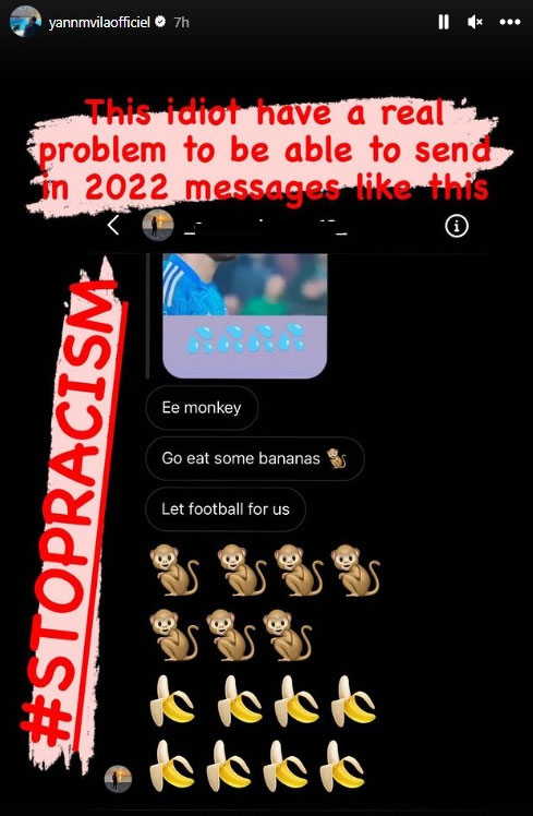 Πιο συγκεκριμένα ο Γάλλος μέσος του Ολυμπιακού πόσταρε σχετικό screenshot στο instagram, όπου φαίνεται η ατάκα του αποστολέα: «Ε, μαϊμού, πήγαινε να φας καμιά μπανάνα και άσε το ποδόσφαιρο για εμάς».