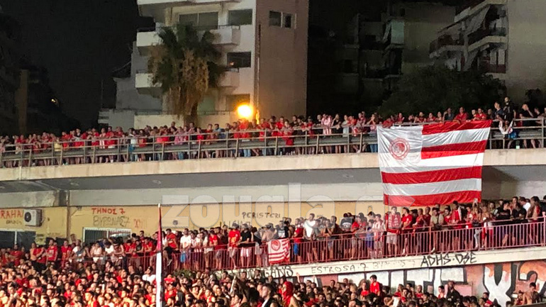 Όσο περνουσε η ώρα ολοένα και αυξανόταν ο κόσμος στο φαληρικό γήπεδο, με τους φίλαθλους της ομάδας να δημιουργούν πολύ καυτή ατμόσφαιρα.