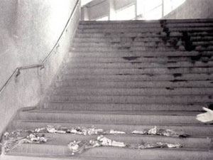 Κατεβαίνοντας οι φίλαθλοι, ο ένας πέφτει πάνω στον άλλο, αφού δεν μπορούσαν να δουν τι συμβαίνει μπροστά τους. Επικρατεί συνωστισμός και ασφυξία.