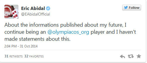 Ο Ερίκ Αμπινάλ επέλεξε το twitter για να απαντήσει σχετικά με το δημοσίευμα της εφημερίδα «sport» που τον ήθελε να σταματάει το ποδόσφαιρο και να μετακομίζει στην Βαρκελώνη.