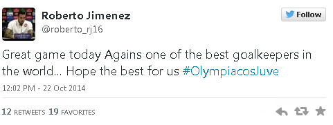 «Μεγάλος αγώνας σήμερα εναντίον ενός από τους καλύτερους τερματοφύλακες στον κόσμο. Ελπίζω τα καλύτερα για εμάς», ανέφερε χαρακτηριστικά στον προσωπικό του λογαριασμό στο twitter ο Ρομπέρτο.