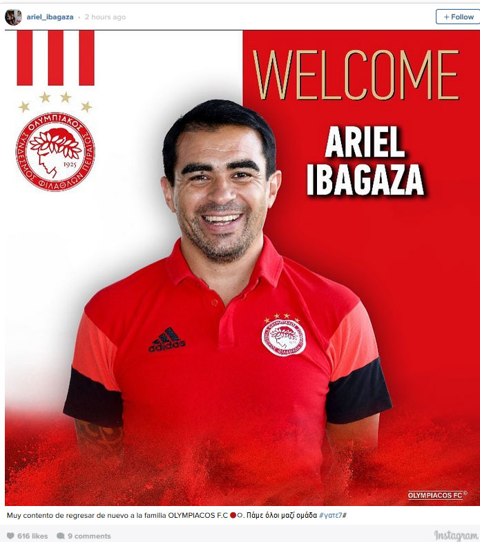 Tη χαρά του για την επιστροφή του στον Ολυμπιακό, προκειμένου να τον υπηρετήσει από άλλο πόστο, εξέφρασε ο Αριέλ Ιμπαγάσα.