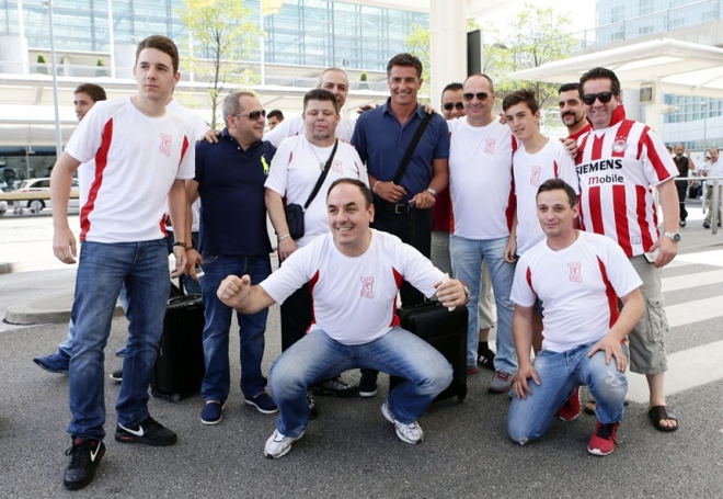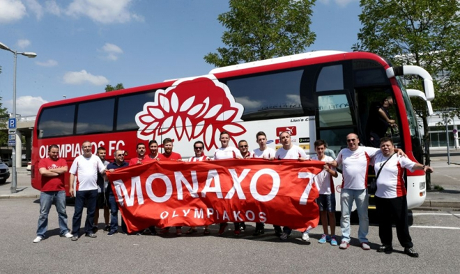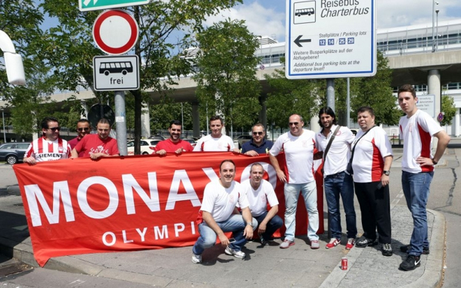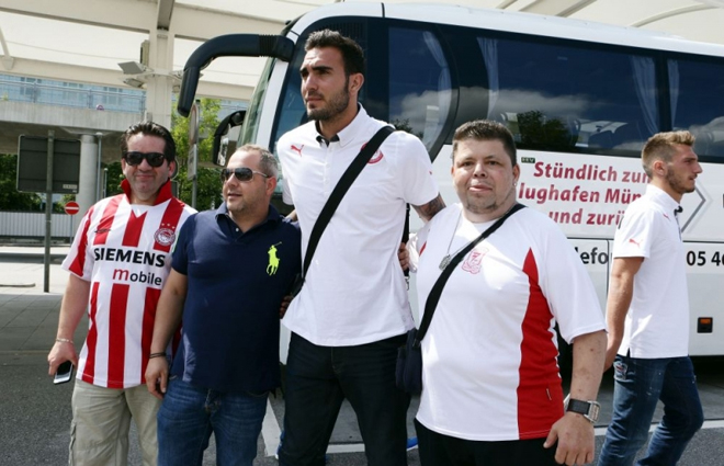 Το μεσημέρι της Δευτέρας η αποστολή του Ολυμπιακού έφτασε στο Μόναχο, όπου την υποδέχθηκαν οι φίλοι της ομάδας, πριν αναχωρήσει για το Ζέεφελντ.