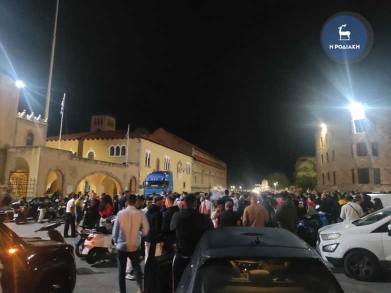 Όπως σ’ όλη την Ελλάδα, έτσι και στη Ρόδο, οι οπαδοί των «ερυθρολεύκων» εκστασιασμένοι βγήκαν στους δρόμους για να πανηγυρίσουν την επική πρόκριση. Στο κέντρο της πόλης, μπροστά από το δημαρχείο, οι φίλοι του Ολυμπιακού έστησαν το δικό τους γλέντι, ενόψει της μεγαλύτερης πρόκλησης στην ιστορία του.