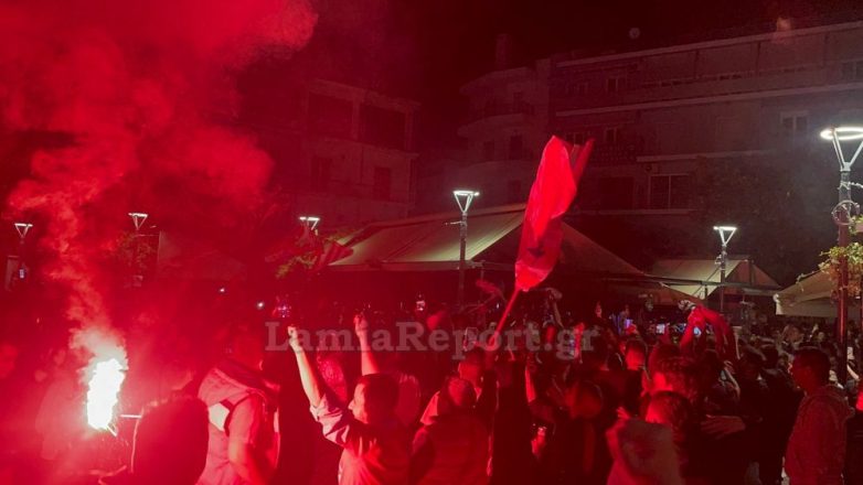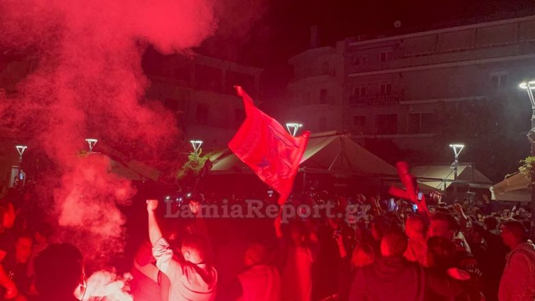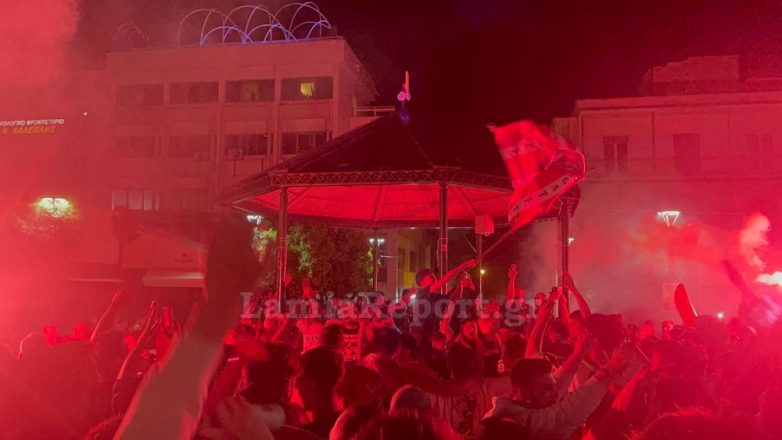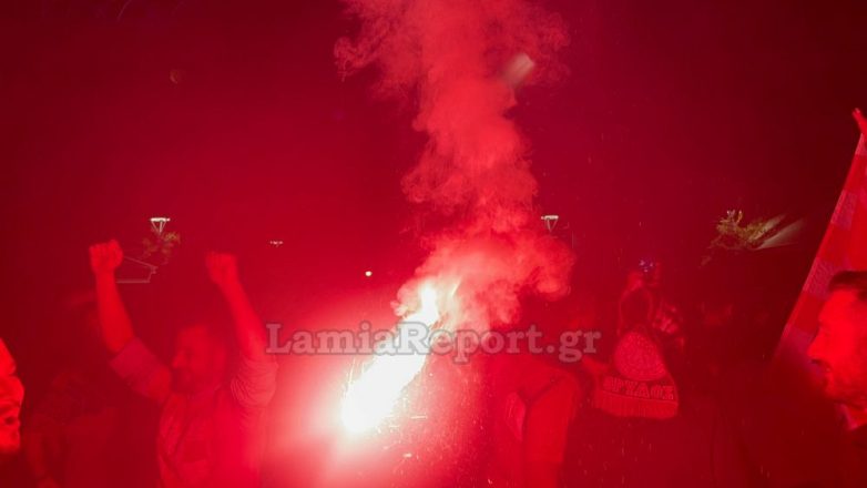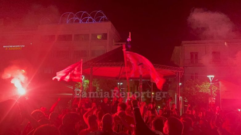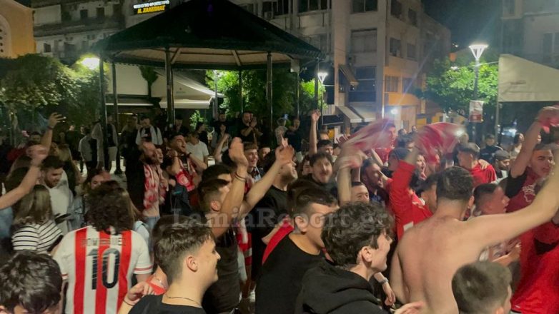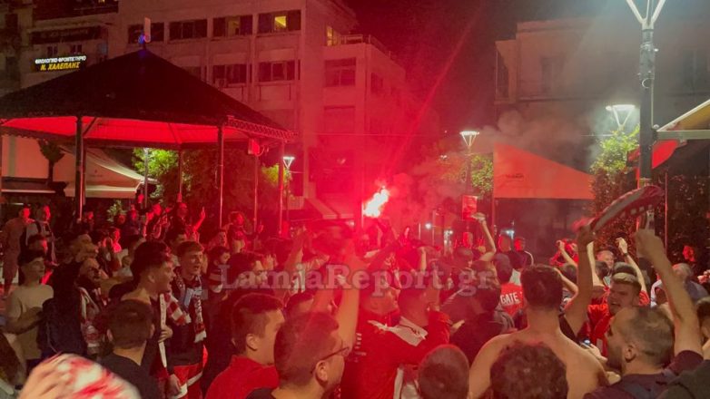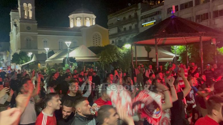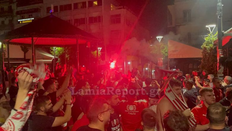 Στη Λαμία, οι φίλοι του Ολυμπιακού κατέκλυσαν τους δρόμους προκειμένου να πανηγυρίσουν και να τραγουδήσουν για την αγαπημένη τους ομάδα. Η συγκέντρωση δεν περιορίστηκε μόνο στην κεντρική πλατεία Ελευθερίας, αλλά και σε όποιο σημείο υπήρχαν φίλοι του Ολυμπιακού που παρακολουθούσαν το μεγάλο παιχνίδι. Πραγματοποιήθηκε και πορεία στο κέντρο της πόλης.
