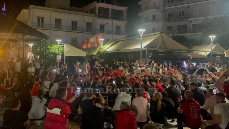 Όπως ήταν αναμενόμενο η κατάκτηση του πρώτου ευρωπαϊκού κυπέλλου από τον Ολυμπιακό έφερε πολλούς φιλάθλους των “ερυθρολεύκων” να κατακλύζουν την πλατεία της Δημοτικής Αγοράς και να να πανηγυρίζουν έξαλλα την ιστορική αυτή επιτυχία.