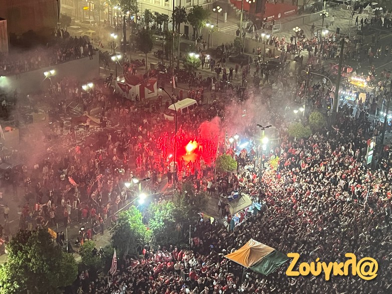 Το πρώτο ραντεβού δόθηκε στο σύνδεσμο Φιλάθλων του Ολυμπιακού στην οδό Γούναρη και στη συνέχεια στην πλατεία Γεωργίου η οποία βούλιαξε από το πλήθπος του κόσμου. Αναμένεται να είναι μια πολύ πολύ μεγάλη νύχτα για μια νίκη που δεν έχει πρηγούμενο στην Ελλάδα.