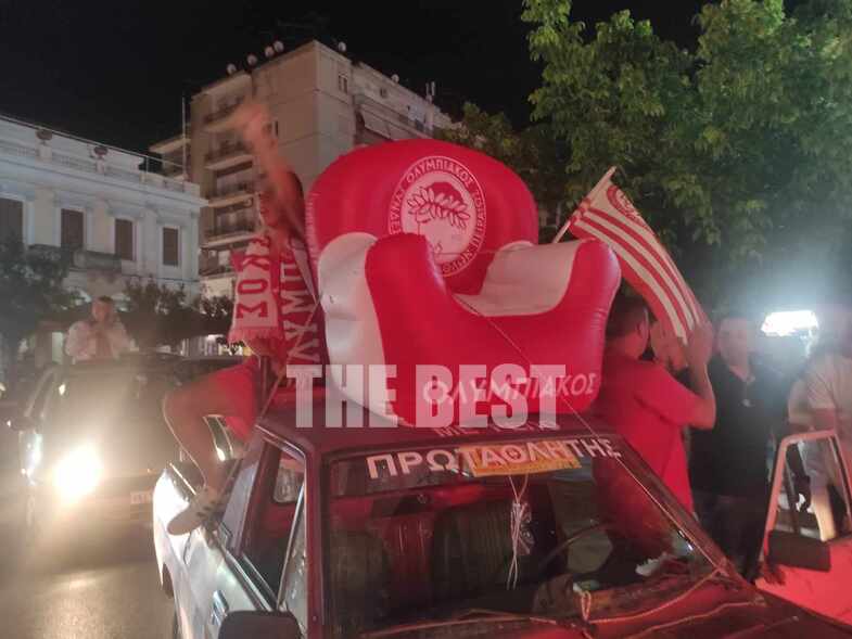 Με σημαίες του Ολυμπιακού, με καπνογόνα, κορναρίσματα και συνθήματα αλλά και πυροτεχνήματα, οι οπαδοί των «ερυθρόλευκων» του Πειραιά πανηγυρίζουν για την κατάκτηση του τροπαίου!