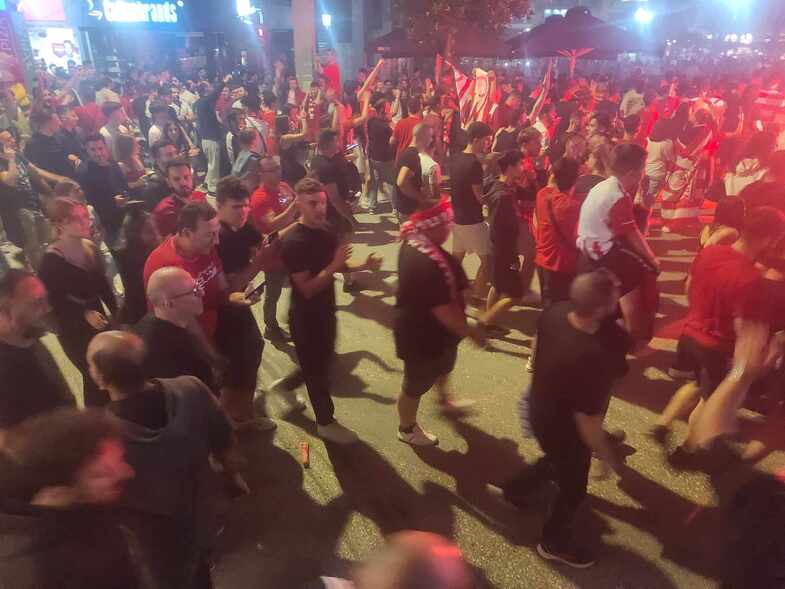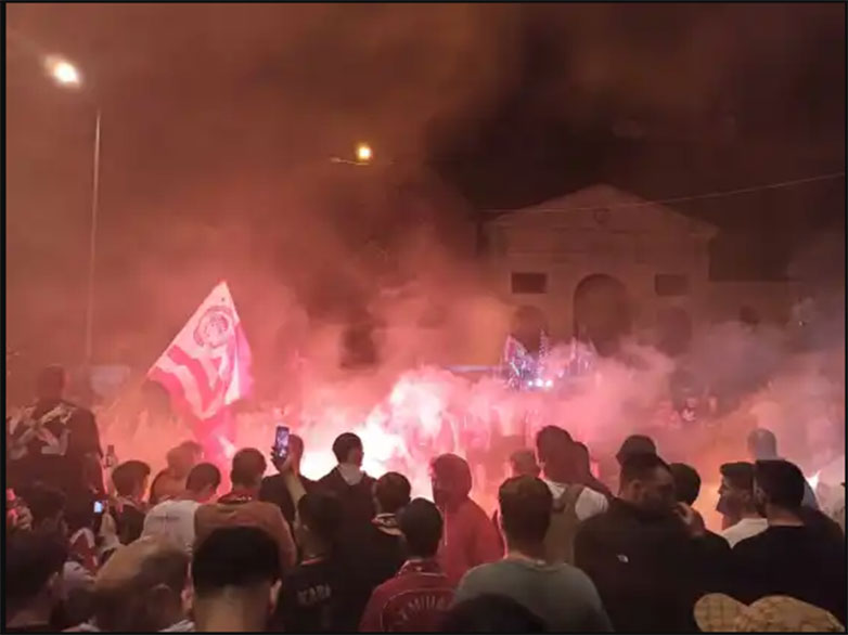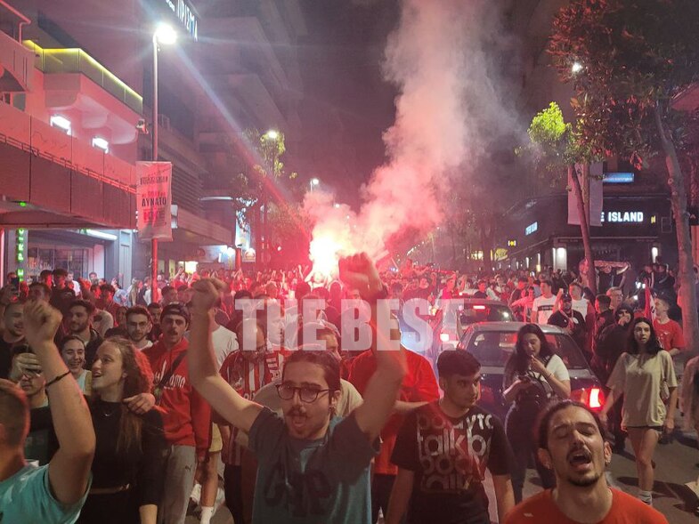 Δεν έχασαν χρόνο οι οπαδοί του Ολυμπιακού στον Βόλο, και με το σφύριγμα της λήξης στον τελικό του Conference League, εκατοντάδες ήταν αυτοί βγήκαν στο κέντρο της πόλης για να πανηγυρίσουν!