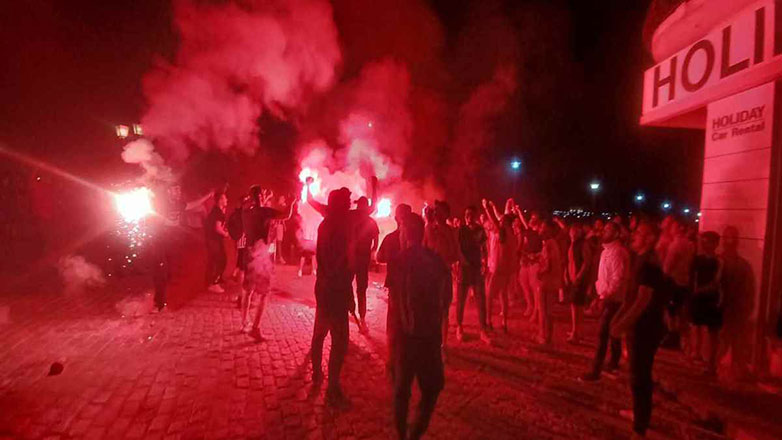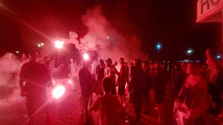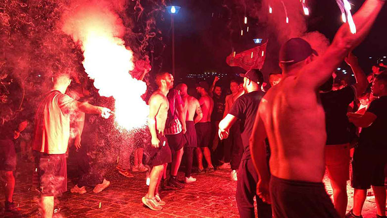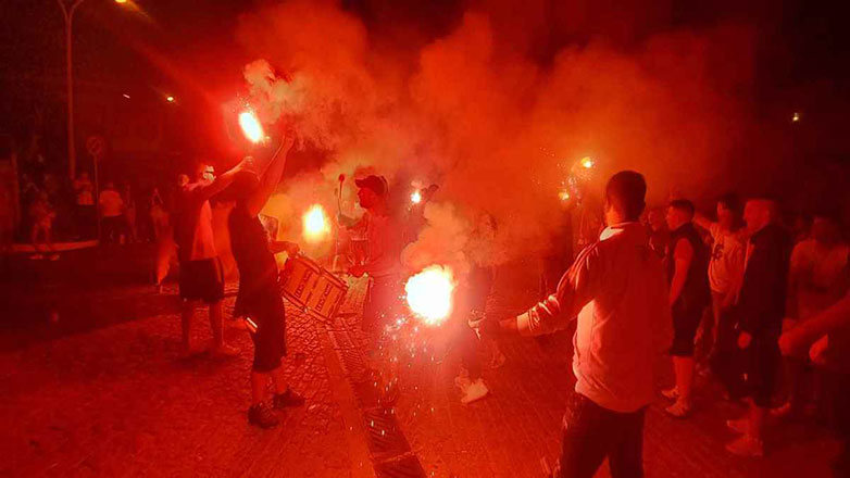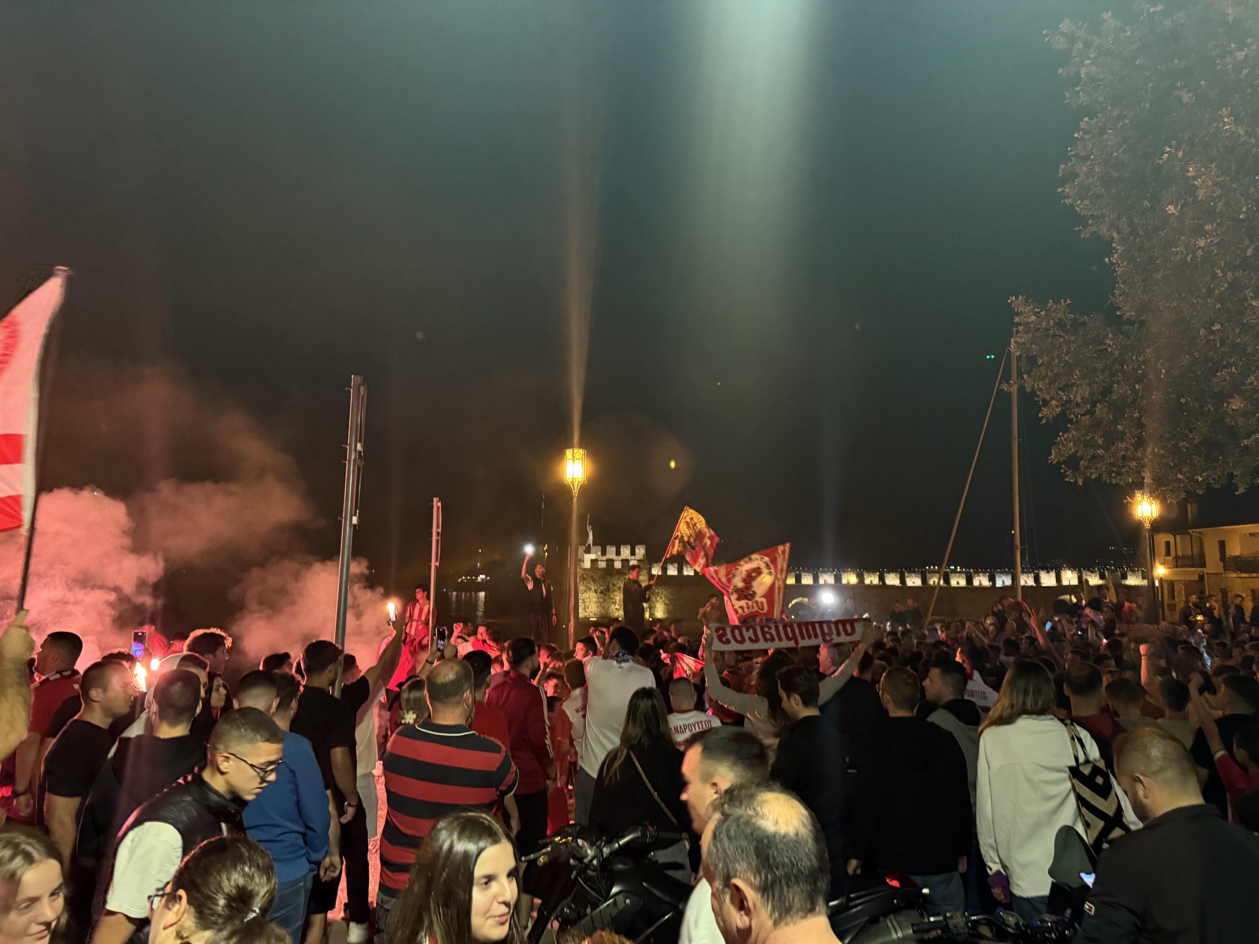 Μόλις ακούστηκε το τελευταίο σφύριγμα του διαιτητή, ο Λήμνος «κάηκε»! Οι φίλοι του Ολυμπιακού της Λήμνου έκαναν τη νύχτα – μέρα, με τα καπνογόνα που άναψαν και έστησαν ένα τεράστιο ολονύχτιο γλέντι.