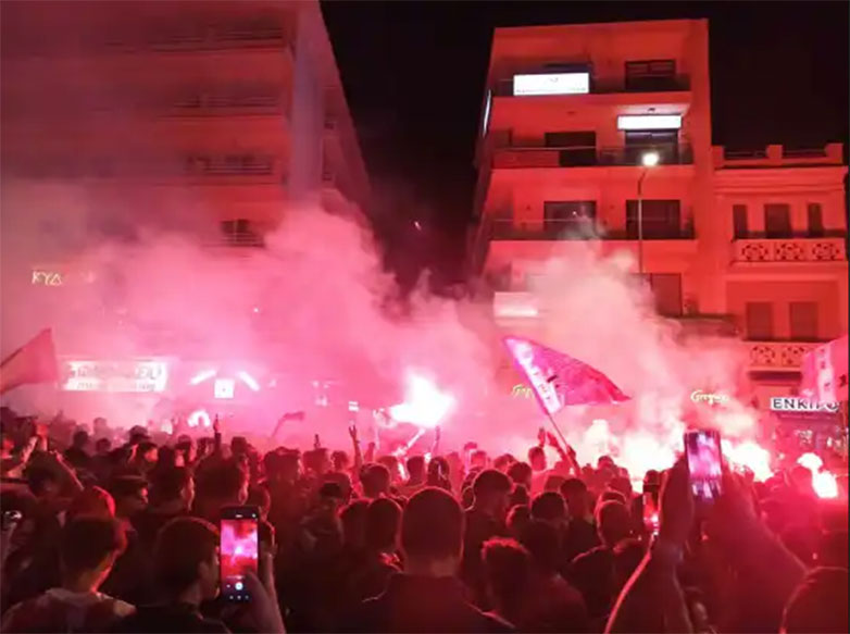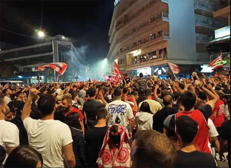 Πανηγυρισμοί στο κέντρο των Χανίων για την ιστορική νίκη του Ολυμπιακού