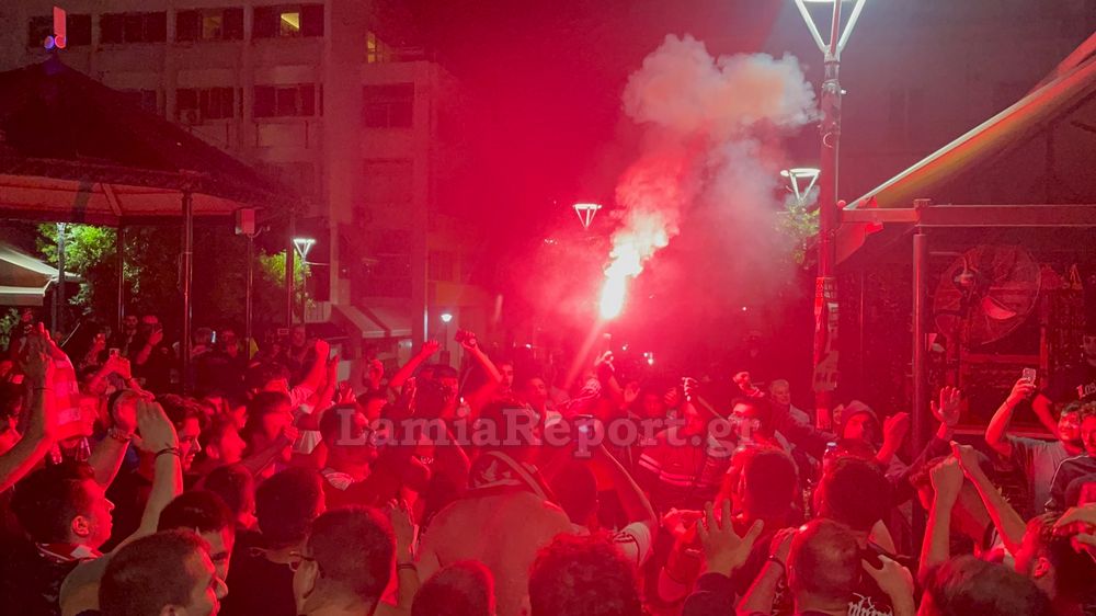 Στη Λαμία, οι φίλοι του Ολυμπιακού κατέκλυσαν τους δρόμους προκειμένου να πανηγυρίσουν και να τραγουδήσουν για την αγαπημένη τους ομάδα. Η συγκέντρωση δεν περιορίστηκε μόνο στην κεντρική πλατεία Ελευθερίας, αλλά και σε όποιο σημείο υπήρχαν φίλοι του Ολυμπιακού που παρακολουθούσαν το μεγάλο παιχνίδι. Πραγματοποιήθηκε και πορεία στο κέντρο της πόλης.