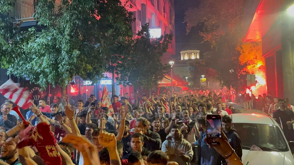 Δεν έχασαν χρόνο οι οπαδοί του Ολυμπιακού στον Βόλο, και με το σφύριγμα της λήξης στον τελικό του Conference League, εκατοντάδες ήταν αυτοί βγήκαν στο κέντρο της πόλης για να πανηγυρίσουν!