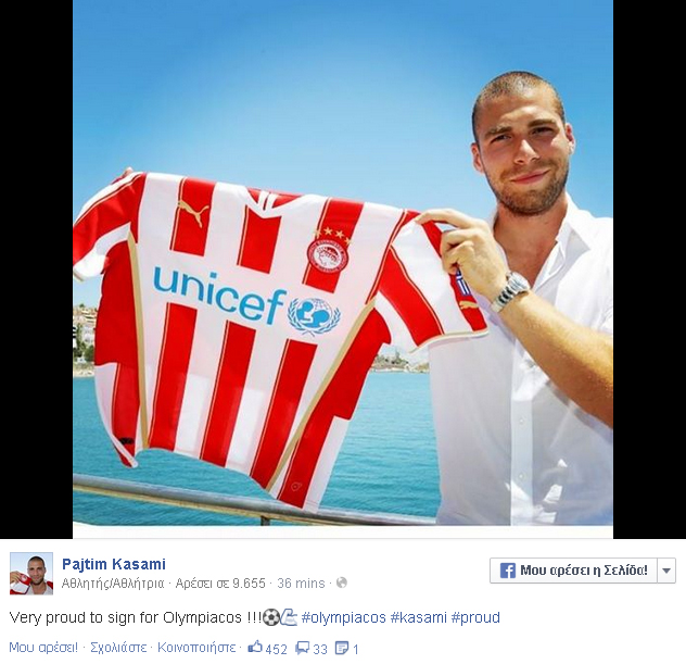 Την υπερηφάνεια του που πλέον ανήκει στο δυναμικό του Ολυμπιακού εξέφρασε ο Παϊτίμ Κασάμι, για τη νέα προοπτική στην καριέρα του.
