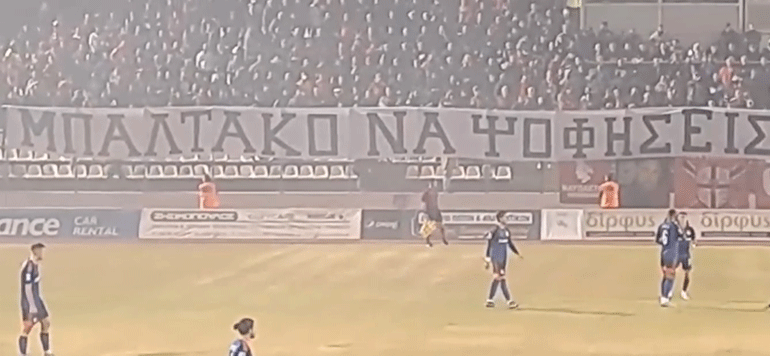 Ένα τεράστιο ξεδιπλωμένο πανό με την αποκρουστική φράση «Μπαλτάκο να ψοφήσεις εσύ και η οικογένεια σου». Μία κερκίδα έξαλλη να κραυγάζει εν χορώ «Μητσοτάκη γα@@@@αι». Ένα γήπεδο να ουρλιάζει υβριστικά και χυδαία συνθήματα για την νεκρή μητέρα του πρωθυπουργού.