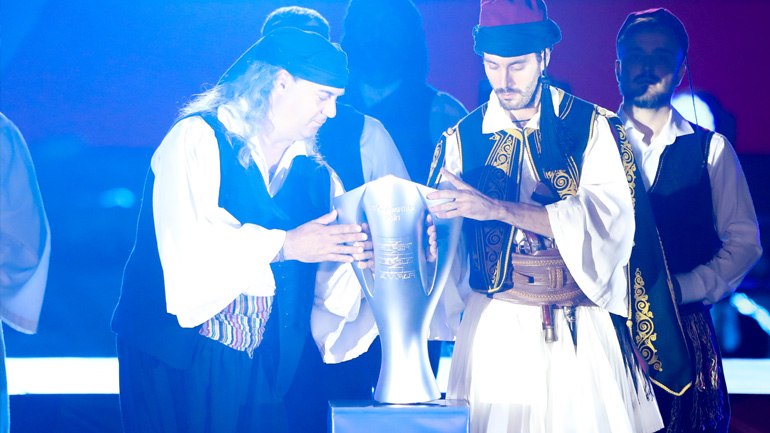 Την παράσταση έκλεψε ο Ματίε Βαλμπουενά σε ρόλο… βοηθού παρουσιαστή, ενώ όταν οι Πειραιώτες σήκωσαν το βαρύτιμο τρόπαιο η νύχτα έγινε μέρα από τα δεκάδες βεγγαλικά, που έδωσαν χρώμα στον ουρανό πάνω από το «Γ. Καραϊσκάκης».